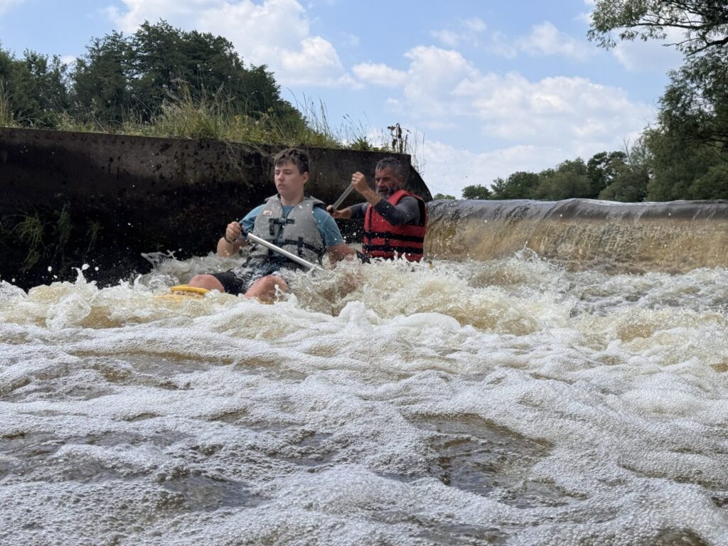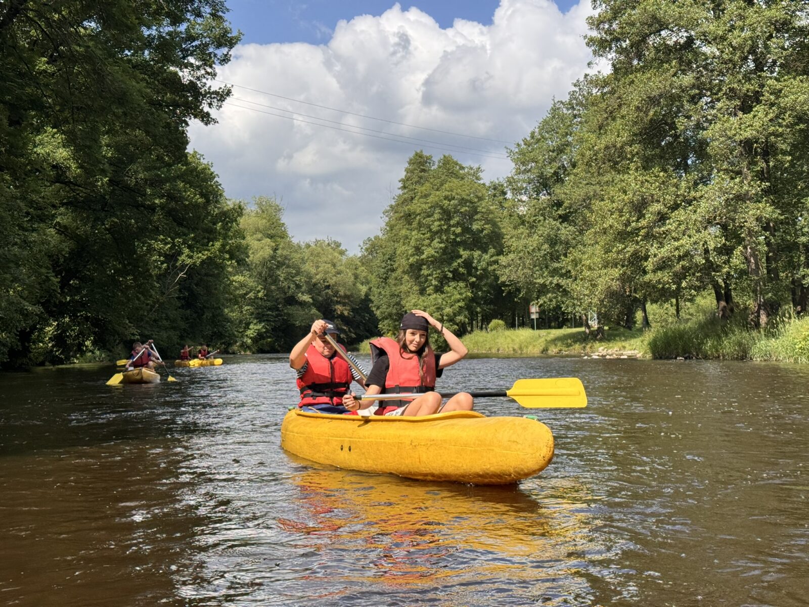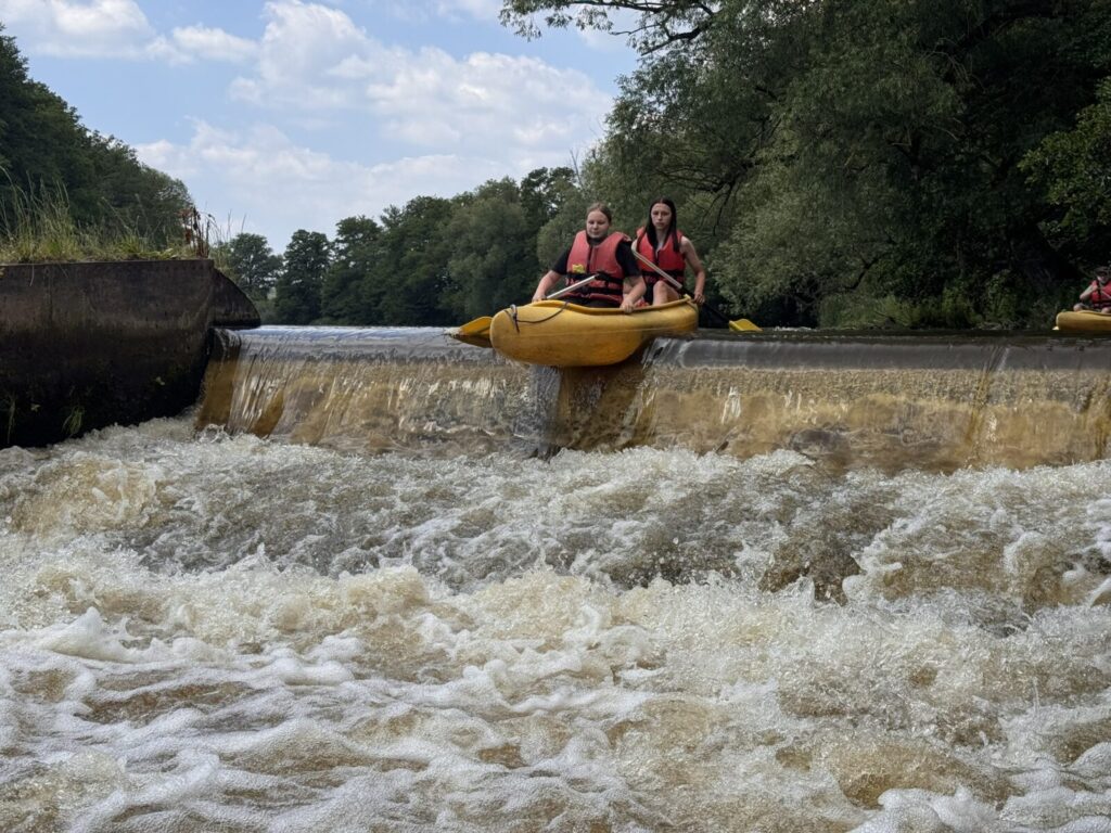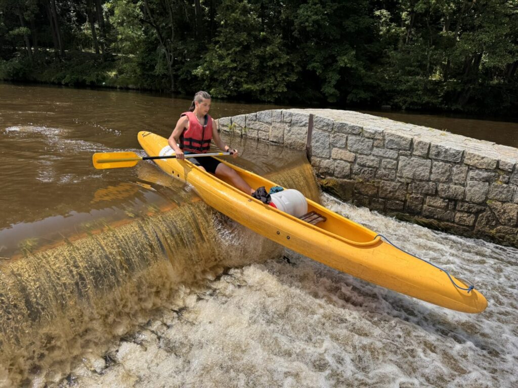 Druhý den nás čekala plavba z Horažďovic do Katovic, úsek plný jezů a tedy náročných volejů, jedinou odměnou byly sjezdy šlajsen. Stín jsme si ten den moc neužili, takže se nám kolena, ramena i zátylky zbarvily do růžova. Večer jsme si užili krásný vodácký kemp v Katovicích, který opravdu vřele doporučujeme. Ve čtvrtek ráno jsme již zkušeně sbalili stany a nasedli na kánoe jako první. Užili jsme si tak krásnou řeku, na které jsme byli úplně sami.