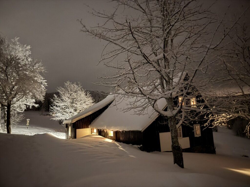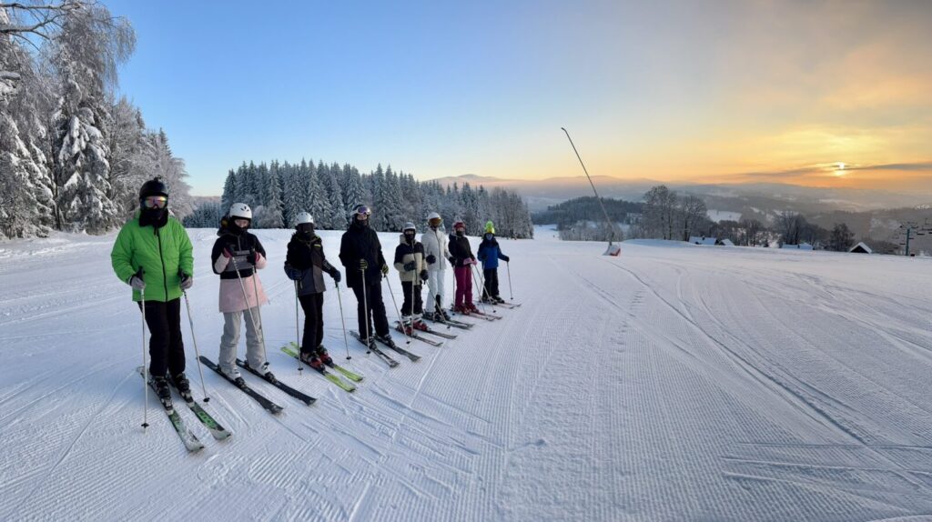 Ještě na konci roku 2025 byly v Pasekách zelené louky, maximálně zasněžená jedna krátká sjezdovka. Potom se ale Krakonoš smiloval a otevřel stavidla pořádného horského sněžení a mrznutí a tak naše parta kravařských sportovců dorazila do nádherné zimy a naprosto bílé horské přírody.