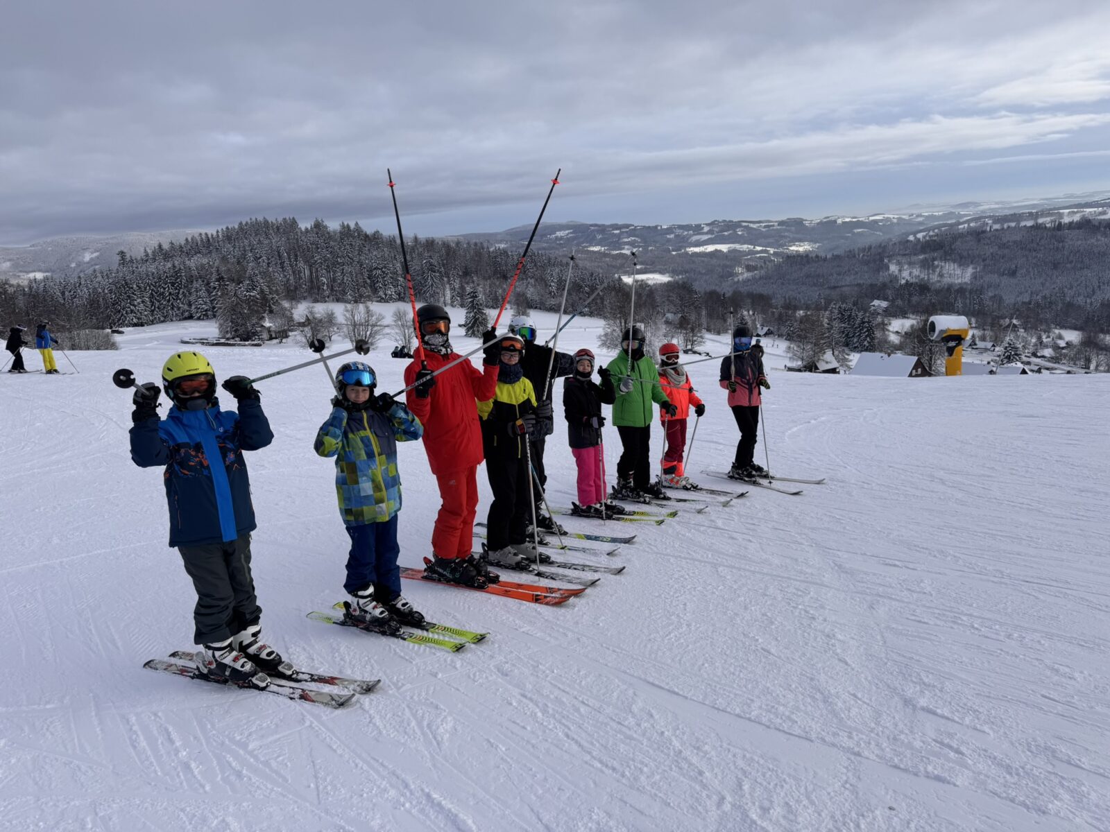 Ještě na konci roku 2025 byly v Pasekách zelené louky, maximálně zasněžená jedna krátká sjezdovka. Potom se ale Krakonoš smiloval a otevřel stavidla pořádného horského sněžení a mrznutí a tak naše parta kravařských sportovců dorazila do nádherné zimy a naprosto bílé horské přírody.