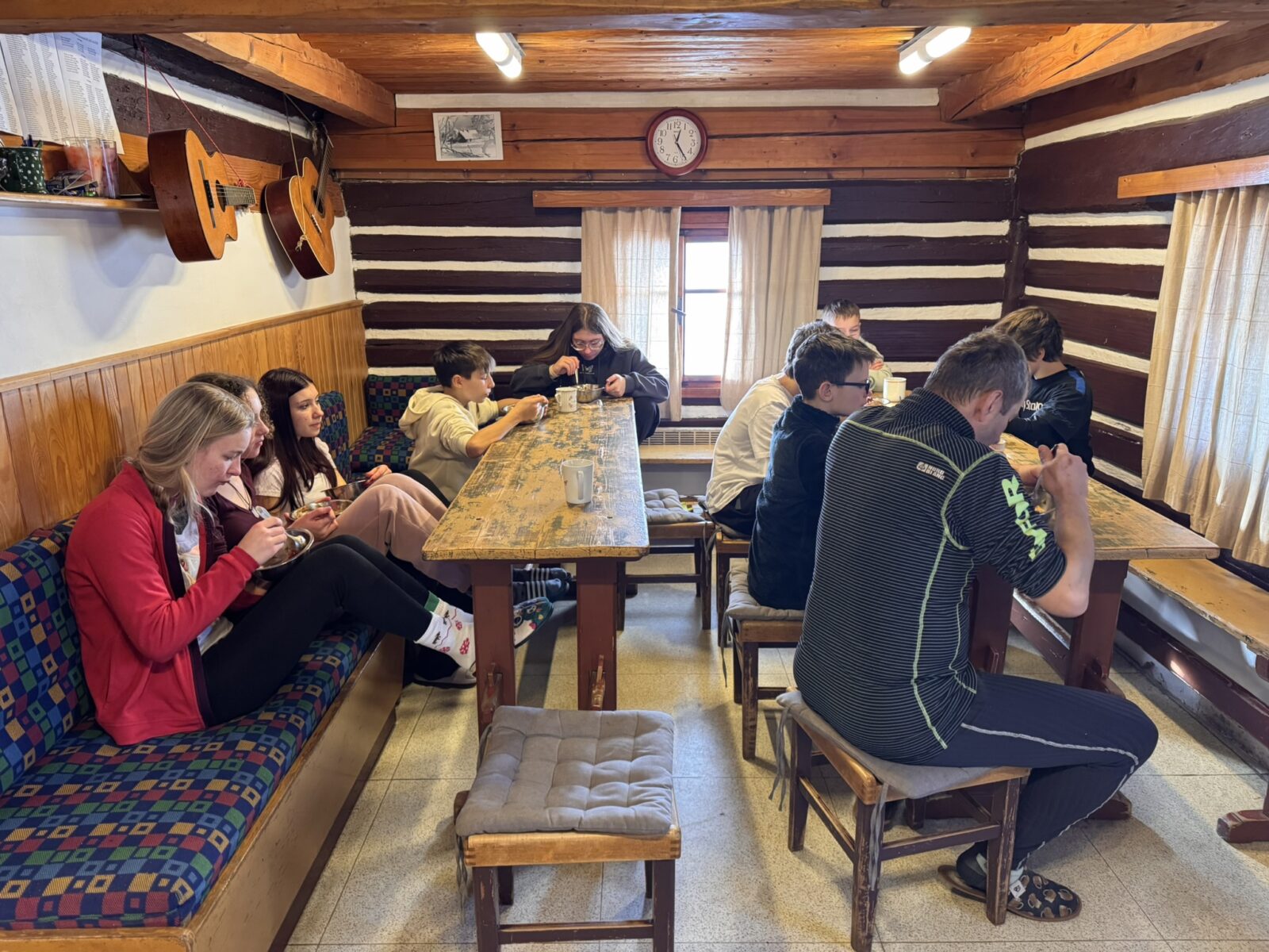 Uvítala nás opět chata Bosna Klubu českých turistů z Turnova, kterým i touto cestou upřímně děkujeme. Chata je totiž úplně skvělá! Sice to není hotel s mnoha pokoji a mnoha koupelnami, ale skromnost je výsadou pánů a nejlepší na všem je, že je chata téměř na sjezdovce a my tak nemusíme nikam docházet.