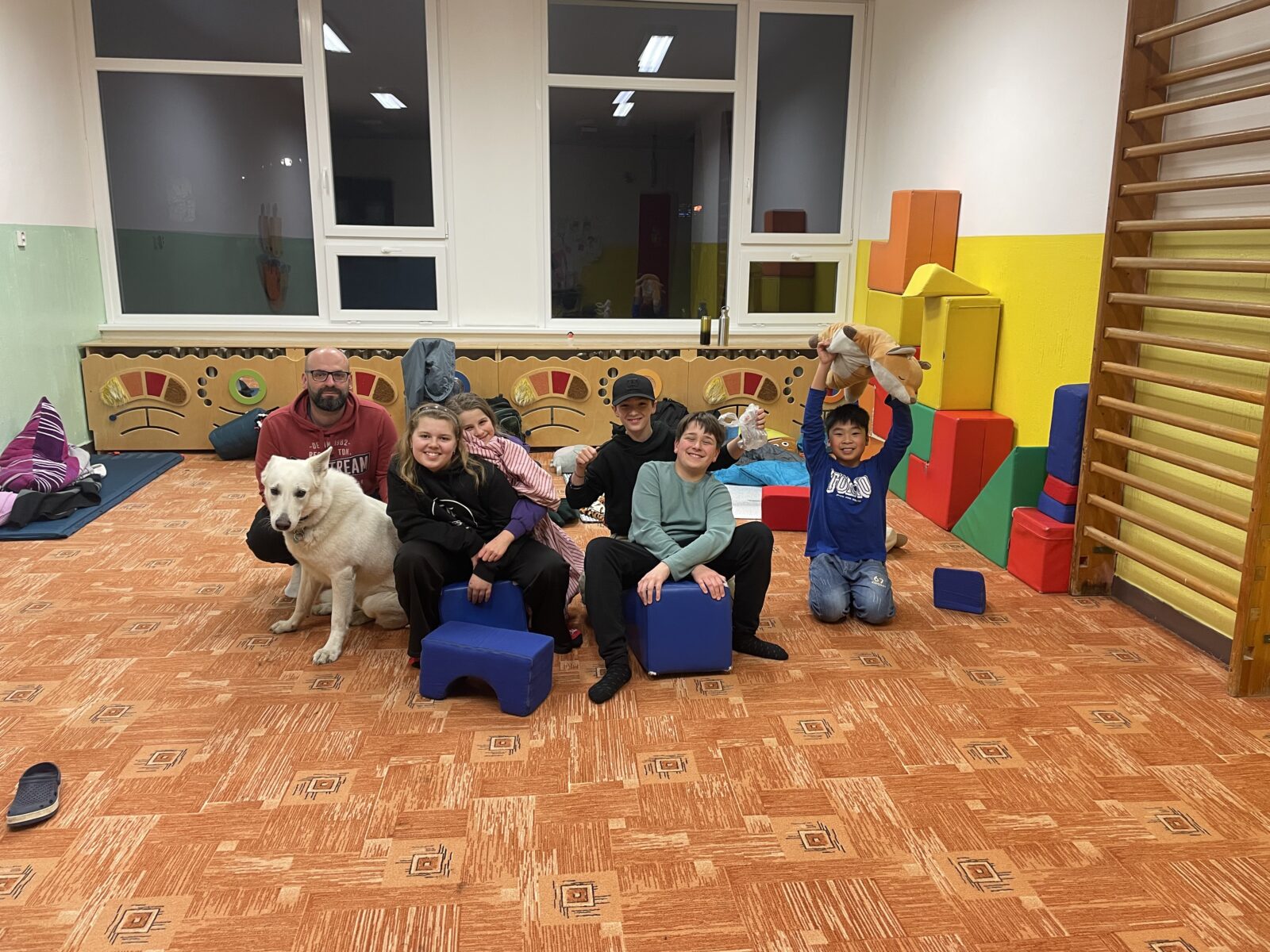 Pro některé děti ale večer teprve začínal – několik odvážlivců totiž ve škole přespalo. Připravily si lehátka i spacáky, vyčistily si zuby a vyvenčily psa Vendu.