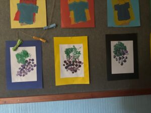 V minulém týdnu jsme ve výtvarce společně malovali a otiskovali hrozen vína, moc se nám to povedlo.